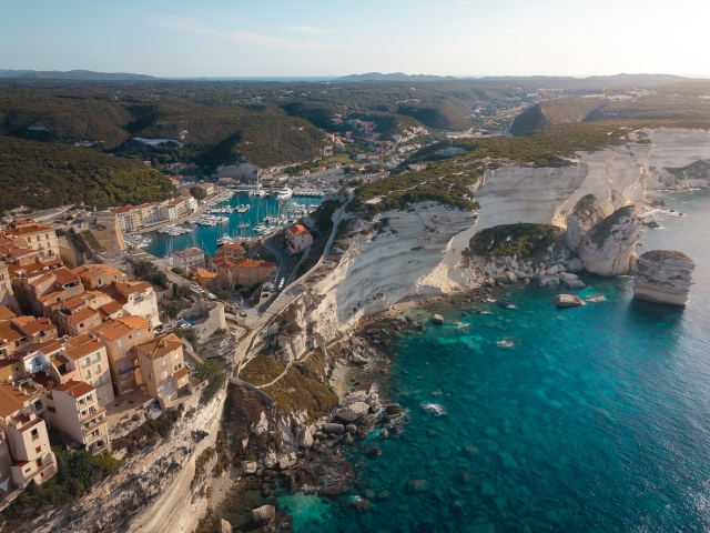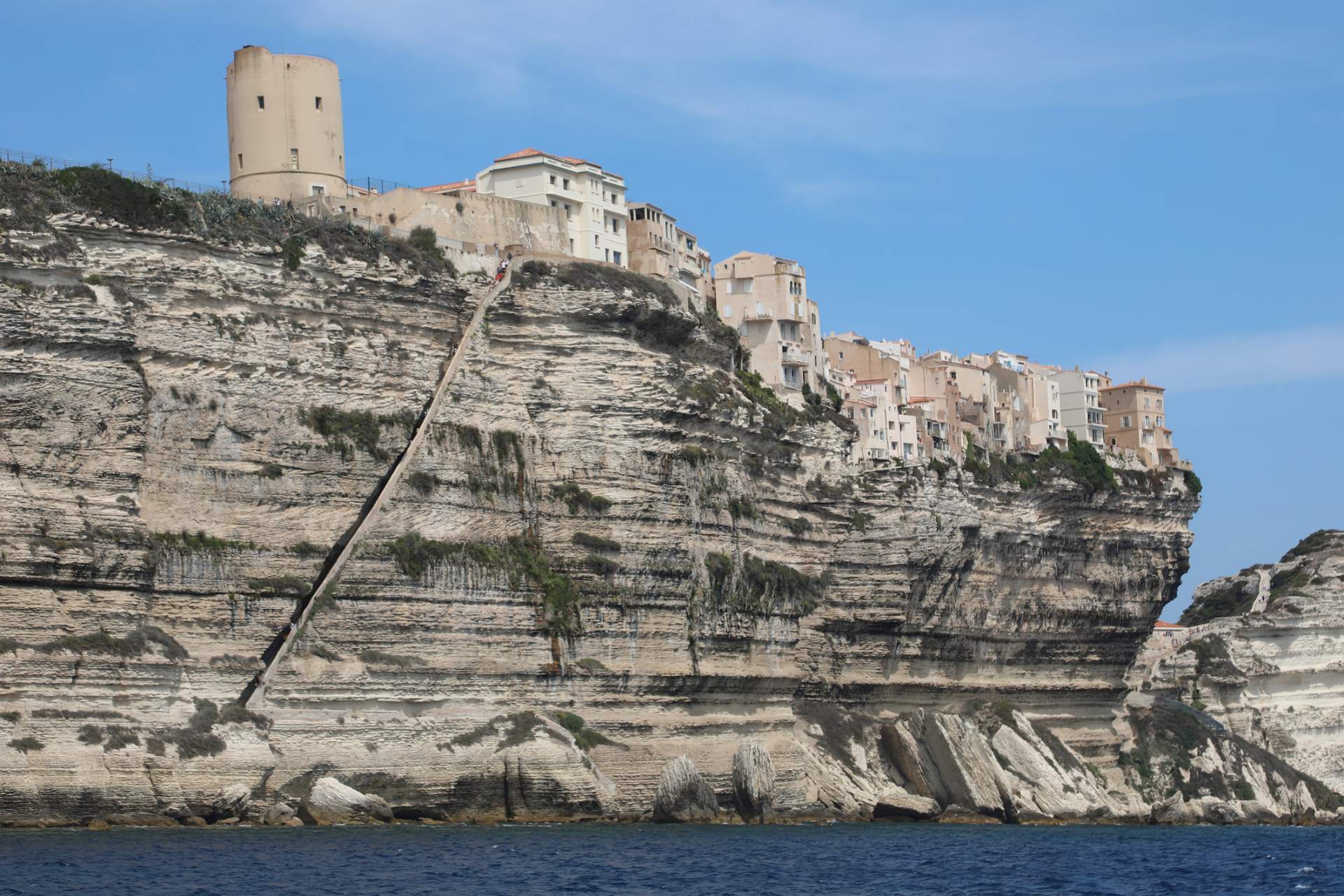 コルシカ島の名所のなかでも、絶景ポイントとして多くの観光客を集めているのが、最南端にあるボニファシオ(Bonifacio)です。激しく侵食された石灰岩の断崖が地中海からそそり立ち、その上に9世紀に形造られた城塞都市があります。ダイナミックな全景を眺めるなら、ボニファシオ港から出ている遊覧船がおすすめです。