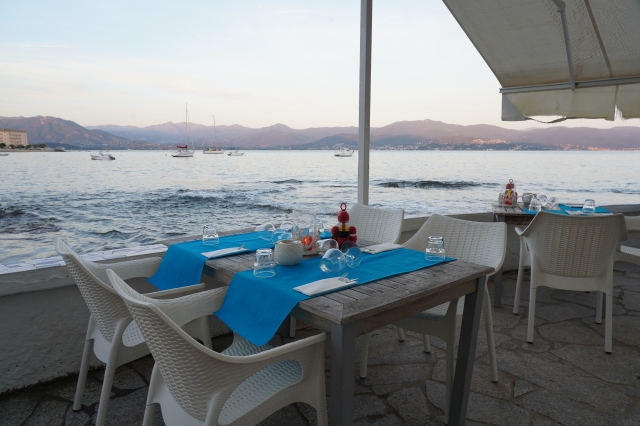 アジャクシオから西へ約2kmの所にあるシーフードのレストラン。波打ち際のテーブルで、鉄板焼など新鮮な魚介類を味わうことができます。