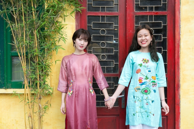 ベトナムの民族衣装アオザイは、女性なら一度は着てみたいもの。シルクの既製品なら100ドルくらいから購入できます。短時間で作れる店もあるので、好みの生地を選んでオーダーするのも楽しいでしょう。