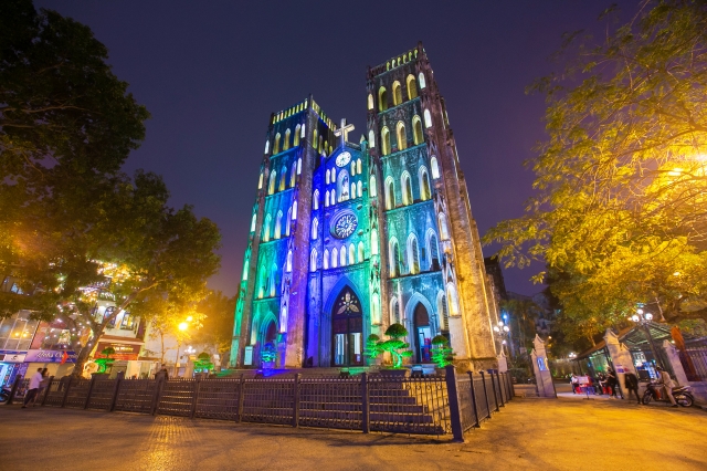 ハノイ最大の教会であるハノイ大教会は、1886年、仏教寺院の跡地に建立され、その後、1900年初頭に現在のふたつの尖塔を有するネオゴシック様式に改築されました。ミサの時間のみ内部に入ることができ、美しいステンドグラスを鑑賞することができます。