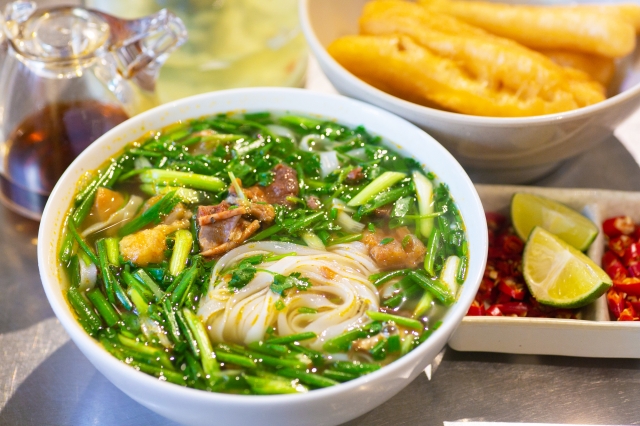「ハノイでNo.1のフォー屋」との声も挙がる人気の店。メニューはフォー・ボー・タイ・ラン(ニンニクで炒めた牛肉のせフォー)1品のみですが、この味を求めて店は連日満席になり、夕方には売り切れることもあるので早めに訪れましょう。