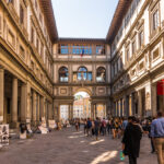 ドゥオーモからアルノ川へ向かって歩いて行ったところにあります。歴代のメディチ家が収集した約2500点もの美術品が展示されている世界最古の美術館で、主にトスカーナ地方を中心としたイタリアの絵画を鑑賞できます。
