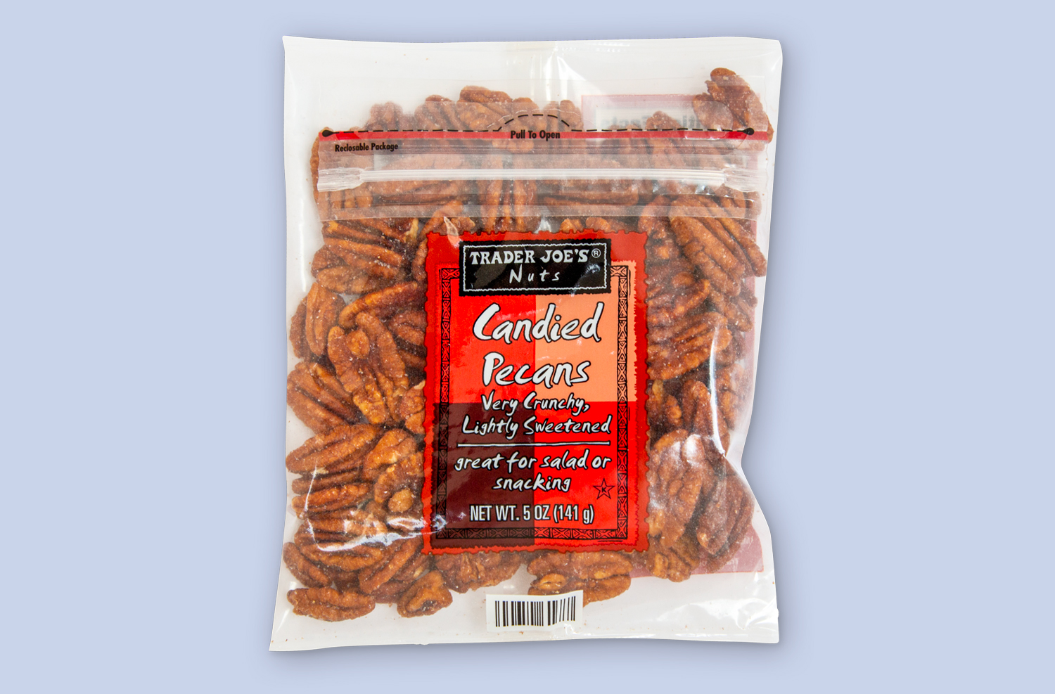 トレーダー・ジョーズの定番フードみやげのなかでおすすめなのがこちら。良質なピーカンナッツをローストして、ほどよい甘さと塩気でコーティング。カリッとした軽い食感とコクのある味わいが魅力です。そのままでもサラダのトッピングにもOK!(店舗情報は 1. を参照)