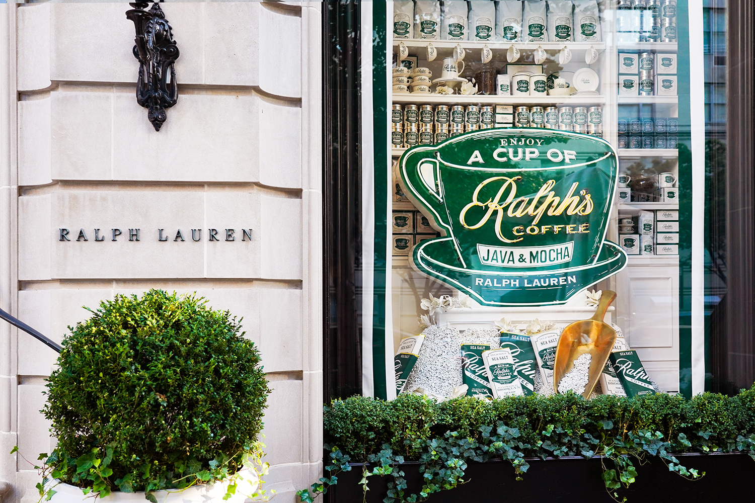 アメリカン・トラディショナルの代表格ラルフ・ローレン。本店に併設されているのがカフェのラルフズ・コーヒー。店内のおみやげコーナーにはハーニー&サンズとのコラボティーやチョコレートなど、ニューヨーク店限定グッズも見つかります。
