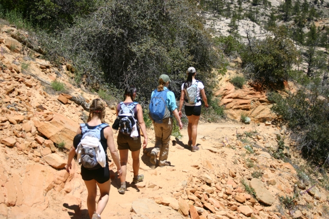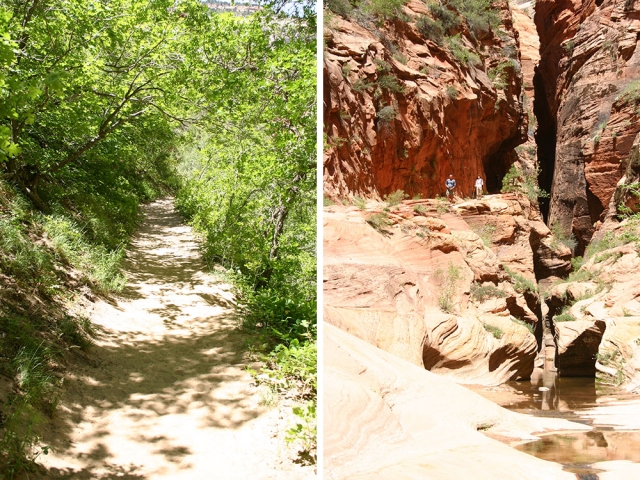 トレイルヘッド(出発地点)は、シャトルバスの停留所があるウイーピング・ロック。 できるだけ朝早い時間のシャトルバスに乗って到着してください。 また、トレイルには水場がないので、リュックにはたっぷり水を用意しましょう。 なお、ウイーピング・ロック自体も見どころのひとつで、 すぐそばまで行ける停留所から0.5マイル(800m)ほどのトレイルがあります。出発してすぐに九十九折りの上り坂になります。トレイルは急な傾斜がなくよく整備されています。