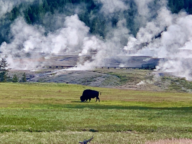 ただし、歴史家であるリー・ホイットルセーが「イエローストーンはリゾート地でも動物園でもない(中略)公園内では常に死と隣り合わせだ」と語っているように、園内での動物との距離には注意しなければなりません。世界遺産に選ばれた理由に、イエローストーンは固有の生態系をもち、絶滅危惧種が多く生息していることがあげられています。狼のように、生態系を守るために人為的に放たれた動物もいますが、基本的には自然の生態系のなかで動物たちは生きています。来訪者は、その中にお邪魔していることを常に意識しなければなりません。自然界でもソーシャル・ディスタンスを守らなければならないことを今回の旅であらためて認識しました。