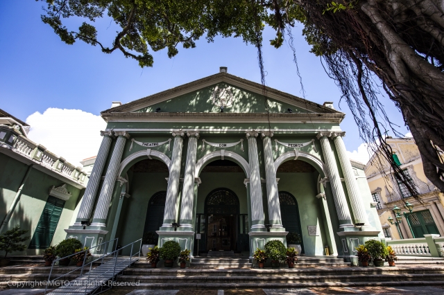 ステージ上で二人が演奏している場所はドン・ペドロ5世劇場。1860年にポルトガル国王ドン・ペドロ5世を記念して建てられた西洋式の劇場で、現在でも使用されています。