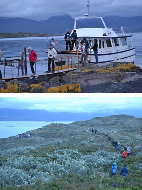 帰路は島に上陸し、ミニトレッキング。ようやく日が暮れたウシュアイアの町の夜景を楽しみながら港に帰り着きました。