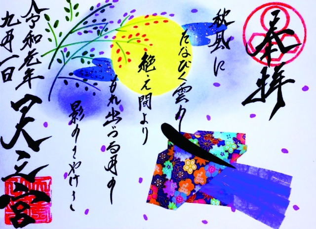 御朱印の絵柄は2ヵ月に一度変わり、季節感あふれるもの、あたたかな気持ちになるもの、縁起のよい雅なものばかりです。心のなかから開運されそうな限定御朱印、ぜひ心を込めて書いたハガキで応募してみてください。