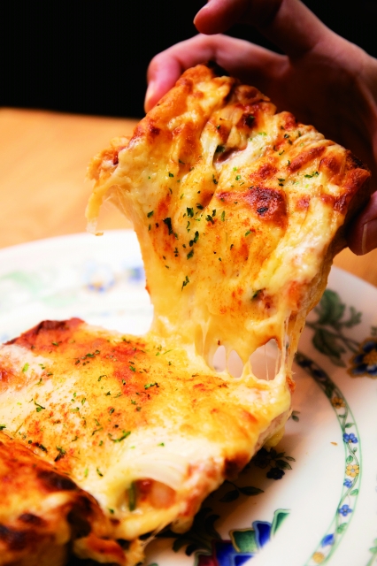 イタリアンレストランで食べるピザが大好きだった、という創業者の奥様が考案したことがメニューの発端だったそう。パイ生地の代わりにパンを使い、幾度となく試行錯誤して完成したという誕生ストーリーにこだわりを感じます。ふわふわの厚切りパンにたっぷりチーズと具材がからんだ濃厚な味わいが長年愛される秘訣だとか。高温のオーブンを調節しながら焼いていくことで、外はサクッと中はもっちり。この食感がたまりません!