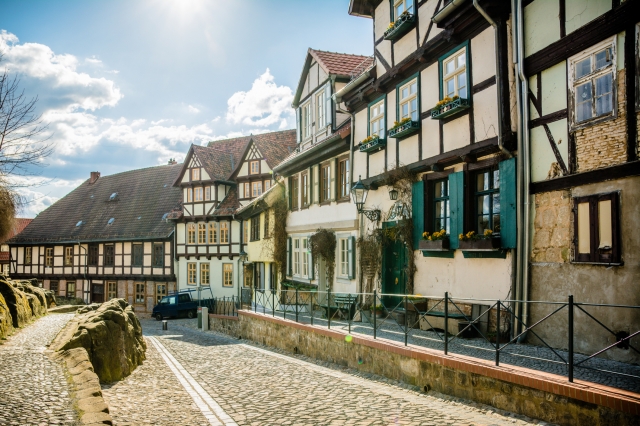風情ある石畳の路地に約1300軒もの木組みの家が残る、ドイツ最大規模の文化遺産の町クヴェトリンブルク。ドイツ中央よりも少し北側に位置するハルツ地方にあり、ベルリンからは鉄道で約3時間15分、前の段落で紹介したバンベルクからアクセスすると、鉄道で約3時間40分です。やはり宝石のような町探しはアクセスに苦労がつきものかもしれません。
