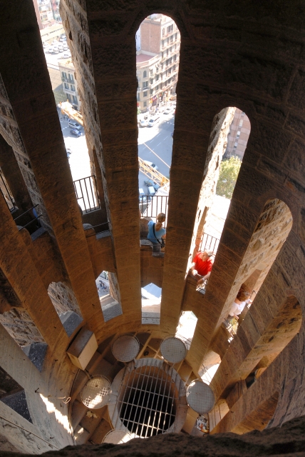 3つのファサードに4本ずつ建てられる鐘楼は、12使徒(イエス・キリストの12人の弟子)を象徴しています。現在、生誕のファサードと受難のファサードの8本の鐘楼が完成しており、エレベーターで昇ることができます。ガウディは聖堂をひとつの「楽器」と考え、塔に80以上もの鐘を吊して音楽を奏でようと計画していました。
