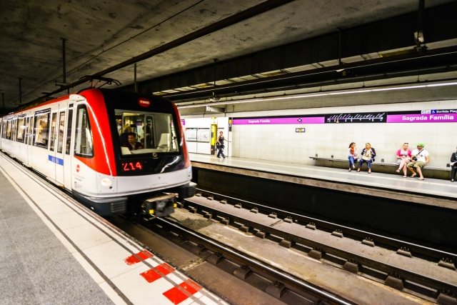 バルセロナ市内から公共交通機関を利用する場合は、メトロ(地下鉄)が便利です。2号線(紫色のライン)または5号線(青色のライン)のサグラダ・ファミリア(Sagrada Família)駅で下車。出口は数ヵ所にありますが、どこから出てもすぐにサグラダ・ファミリア聖堂が見えるので、迷うことはありません。