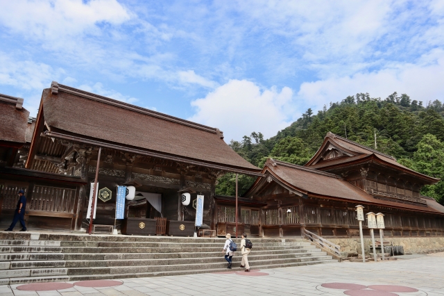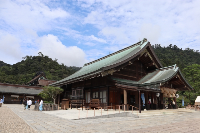 その創建は日本最古の歴史書『古事記』に記されるほど古く、伊勢神宮などと並ぶ、日本で最も重要な古社のひとつです。因幡の白兎神話にも登場する、大国主大神(おおくにぬしのおおかみ)を祀り、広大な境内には、国宝の本殿を中心に拝殿、摂社、末社、文庫、宝庫などが建ち並びます。