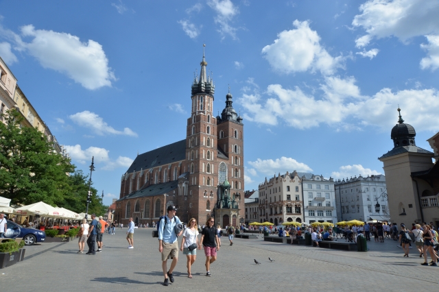 中央広場の東端にある、1222年に建造されたゴシック様式のクラクフを代表する教会です。最大の見どころはポーランドの国宝に指定されている祭壇。名工、ファイト・シュトースの手による傑作で、15世紀に造られました。午前中は祭壇が閉じられているので、午後に行くのがおすすめです。塔にも上ることができ、最上階からは旧市街を一望できます。教会と塔のチケットは別なので、注意しましょう。