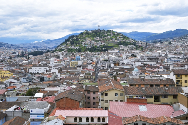 標高が約2850mのキト市街。世界遺産に登録されている旧市街(セントロ・イストリオ)には、400年前の植民地時代の教会や建造物が残ります。