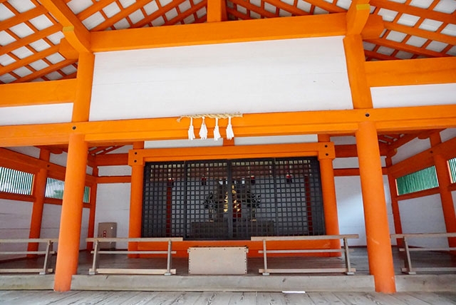 市杵島姫命(イチキシマヒメノミコト)、田心姫命(タゴリヒメノミコト)、湍津姫命(タギツヒメノミコト)の三姉妹の御祭神が祀られ、海の安全、財福、縁結びや心願成就の御利益が絶大!ぜひ東西の回廊に鎮座する境内社も参拝しましょう。すべて国宝か重要文化財に指定されています。
