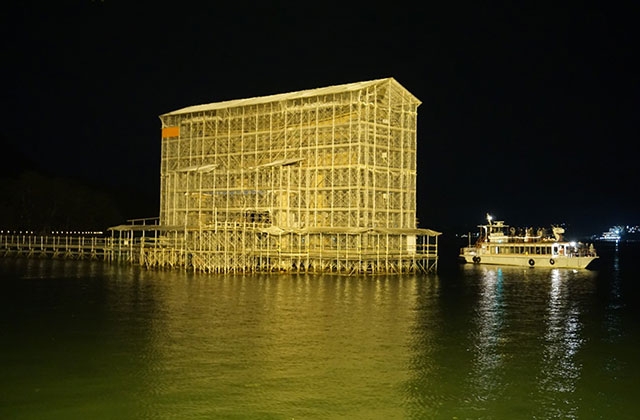 2021年3月現在、大鳥居は修復工事中ですが、夜はライトアップしてキラキラに!逆に今しか見られない貴重な姿を拝めます。