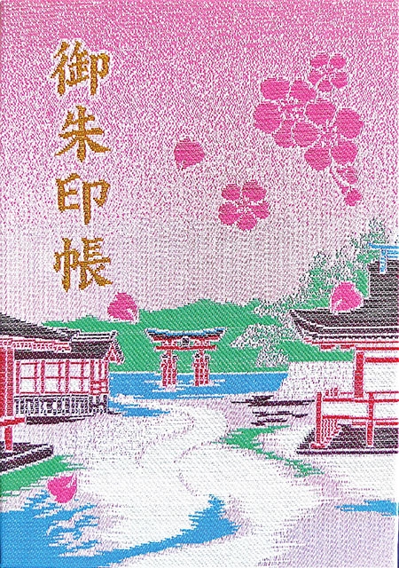 嚴島神社オリジナルの御朱印帳(1000円)は、四季折々の風景が描かれ、季節限定。桜の花びらが美しく舞い散る春限定の御朱印帳は、華やかな桜色で気分も上がります。ちなみに、夏は大鳥居が海に浮かぶ青色、秋は野山が色づくやまぶき色、冬は高舞台で舞楽が奉納される純白と、それぞれの季節にピッタリの色彩が表現されています。