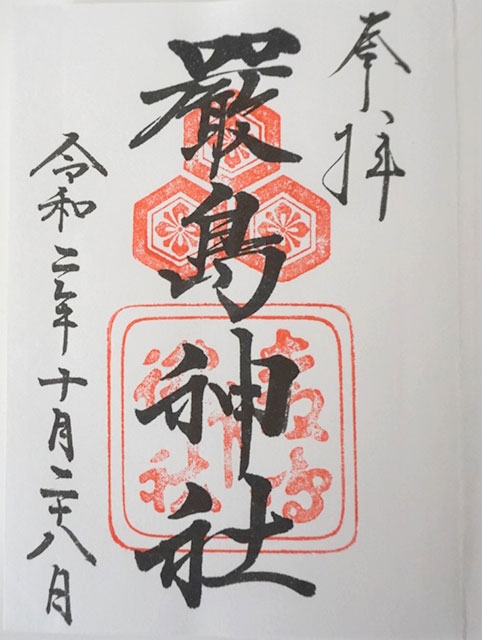季節限定の御朱印帳をゲットしたら、神様とのご縁が結ばれた証として、御朱印(300円)を頂きましょう。嚴島の地名の由来は「神を斎(イツ)き祀る島」からで、島自体が信仰の対象となる神域でした。墨書の神社名に、朱色の三つ亀甲剣花菱の神紋、社名が押し印された御朱印は、神々しいパワーを感じずにはいられません。