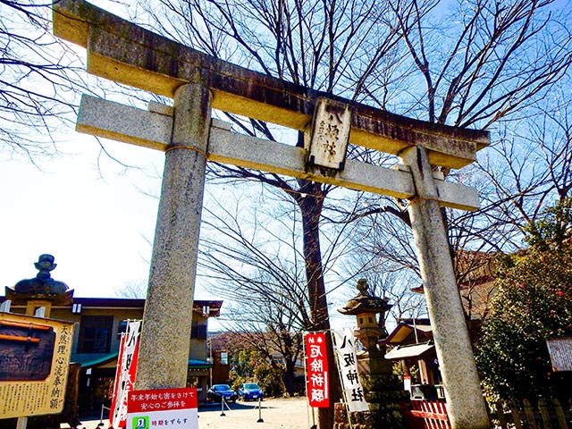 1570(元亀元)年、現在の甲州街道の道筋が定められたことから現在の場所に遷座。本殿は1800(寛政12)年に建造されたもので、精巧な彫刻がほどこされた江戸後期を代表する神社建築として日野市の指定重要文化財にも指定されています。
