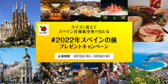 ・プレゼント内容: スペイン往復エコノミー航空券1名(2022年または2023年)/抽選に外れた方にもWチャンス