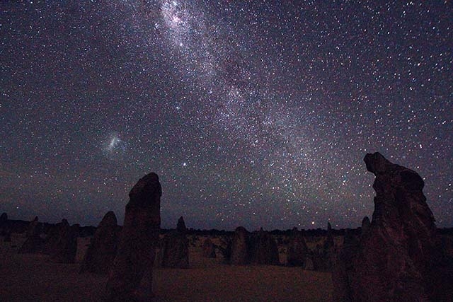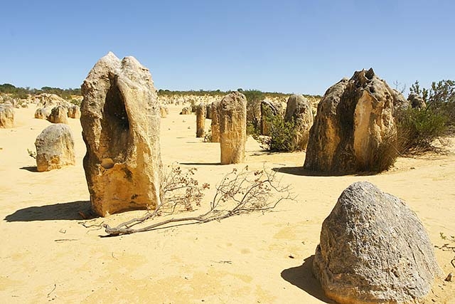 オーストラリアには、世界的に有名な奇岩・巨岩が数多くあります。そのひとつピナクルズは「荒野の墓標」の異名をもつ、世界的に知られる石灰岩の奇岩地帯です。黄砂の砂漠地帯の中にさまざまな形をした尖塔のような岩が無数に点在。大きなものは3mにもなるといいます。日中の明るい日射しに照らし出される様子を楽しむのはもちろんのこと、インド洋に沈む太陽にシルエットのように浮かび上がる奇岩群の見学、さらに夜間の静寂の中、満天の星の下でまるで異星空間のような中に身を置く体験など、時間とともに変化する魅力を満喫できる場所です。