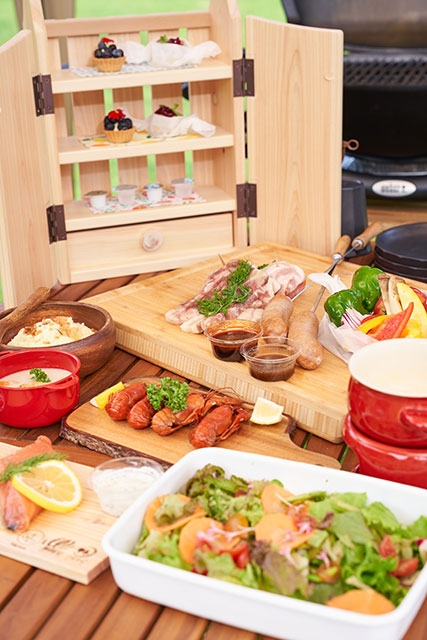 ノーラ名栗ではグランピングでの宿泊のほかに、北欧式バーベキューを楽しめる「コッコバーベキュー」も体験可能です。Jokiプラン3500円、Jarviプラン4500円、Meriプラン6000円の3種のメニューがあり、プランによって、ザリガニやプランクサーモンが味わえます。北欧ではザリガニパーティがよく行われるそうですが、プランクサーモンは地元飯能のヒノキ・西川材を使って香り豊かに仕上げられています。グランピングの朝食で味わったグリッリ・マッカラもすべてのプランに入っています。