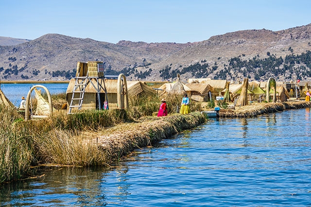 周辺には45ほどの葦の島が点在していますが、簡単にくっつけたり離したりできるので、正確な数はわからないそうです。