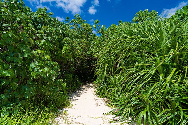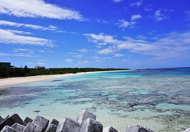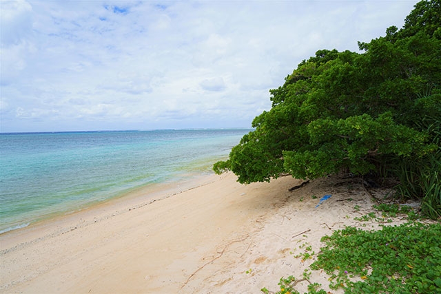 そんな素朴な島内には、自然のままの姿を残すビーチがいくつかあるのですが、私のおすすめは屋良浜。濃い緑の南国の木々が生い茂る先に、キラリと光る海の青。これぞ、離島の海の美景!