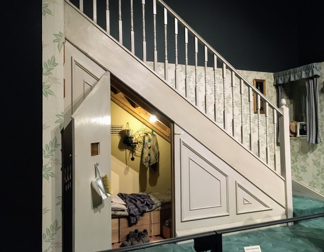 ツアーの入口をくぐると、さっそく一番初めの舞台セットがお目見えです。主役のハリーがダーズリー一家からあてがわれていた階段下の納戸部屋で、すぐそばに立っているスタッフが説明をしてくれます。実物も相当に狭いスペースで、ここで窮屈に暮らしていたハリーの姿が、目の前に現れるかのようなリアルさです。