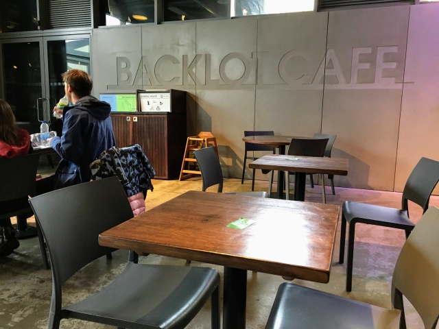 ツアー中はところどころに休憩用のベンチが置いてありますが、興奮しながら夢中になっていると、疲れを忘れて歩きどおしになってしまうことがあります。そんなときにちょうどいいタイミングで現れるのが「バックロット・カフェ」。