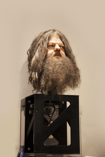次に、ツアー後半部分となる屋内展示場に入ります。はじめは特殊メイクのコーナーで各種展示物のほかに、特殊マスクを俳優に装着している撮影現場の写真や、マスクの作り方などを撮影したビデオ映像が流れています。