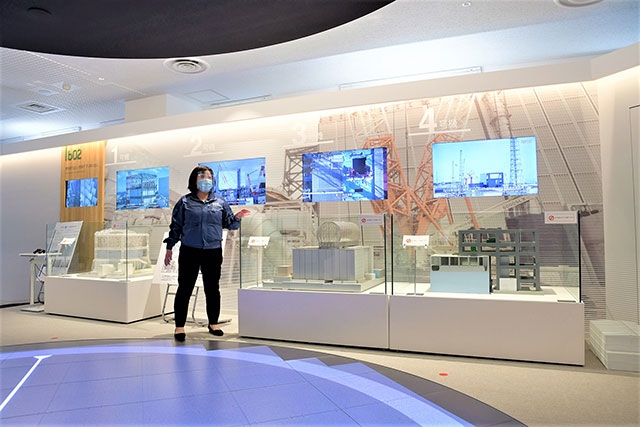 廃炉資料館は、事故当時の発電所内や中央制御室の状況、廃炉現場での燃料などの取り出し作業、福島第1原発の1号機から4号機の状況など、多数の映像と模型による視覚的な展示が行われています。見学は約60分のツアー形式となっており、少人数のグループ(各回7名程度)に分かれてガイドと一緒に各展示を見ていきます。ホームページに各回のツアー開始時間が表示されているので、事前の予約がおすすめです。