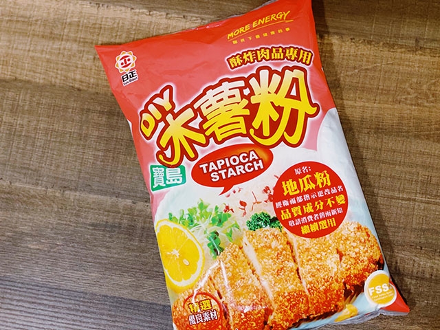 日本では片栗粉を使いますが、台湾ではデンプン質で作られたキャッサバ粉(木薯粉、樹薯粉)を使います。キャッサバ粉は、荒い粒と細かい粒でできていて、荒い粒が台湾唐揚げ独特のザクザク感を演出してくれます。日本の中華スーパーで手に入りやすいタピオカ粉、地瓜粉(サツマイモ粉)でもOK。一般的なスーパーにありそうなもので代用する場合は、白玉粉と薄力粉を混ぜて使ってもそれっぽくなります。