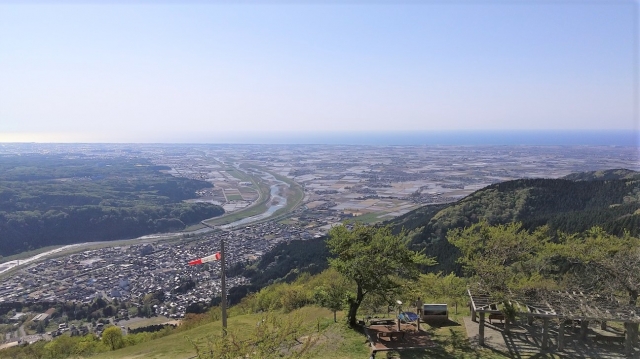 日本海まで見渡せる広々した景色のなかで飛び立つパラグライダー体験も人気です。