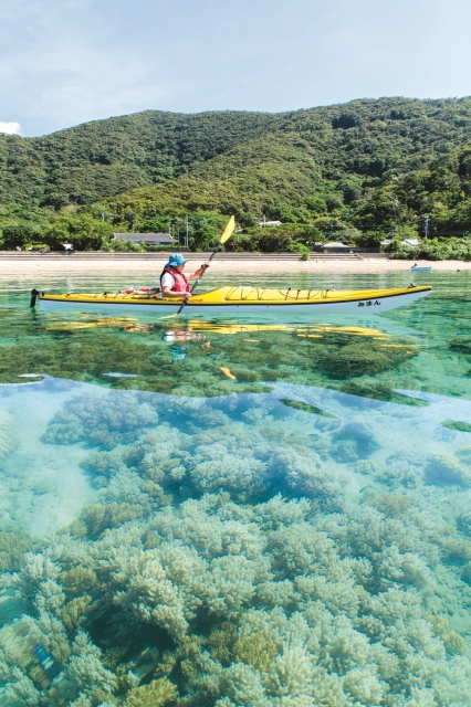奄美大島と加計呂麻島の間にある大島海峡には、約220種類の珊瑚礁が生息しています。海が穏やかになる7月のベストシーズンは、シーカヤックやシュノーケリング、スタンドアップパドルがおすすめです。水中の美しい珊瑚や熱帯魚を防水カメラで撮影しましょう。
