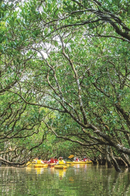 奄美大島中央部にある日本で2番目に広いマングローブでは、カヌーに挑戦しましょう。安定感のあるカヌーは、初心者でも比較的乗りやすく、生き物を観察しながら楽しめます。100年も前に天然記念物に指定されたアマミノクロウサギが生息し、夜行性で耳が短く爪が長いその姿は通常のウサギとは異なり、太古の歴史を感じさせます。