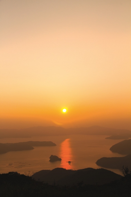 焼内湾(やけうちわん)に沈む夕日は、旅の終盤にぴったりな景色です。奄美最高峰の宇検村・湯湾岳にある展望台から見えるのは360°の眺望。湯湾岳側には原生林、宇検村側には焼内湾の絶景が広がります。
