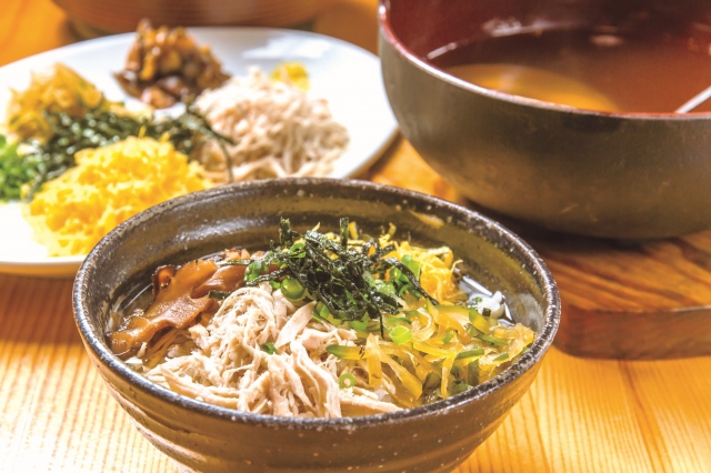 奄美の郷土料理といえば、「鶏飯(けいはん)」。ごはんの上に鶏肉、ねぎ、卵をのせ、鶏の熱々のスープをかけていただきます。各店のコクのある濃厚なスープは、体にしみわたり、絶品。