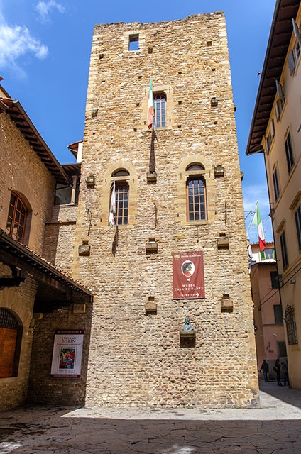 1265年、ダンテ(本名ドゥランテ・アリギエーリ)は、フィレンツェの小さな貴族の家に生まれました。生家は破壊されたために残っていませんが、1911年、生家があったといわれるエリアにダンテの家が再建され、ダンテの人生と作品を紹介する博物館になっています。ホログラムで映し出したダンテの顔、ダンテの旅を体験できるプロジェクションマッピング、当時のフィレンツェの街を体験できるVRなど、最新技術を使った展示も話題です。