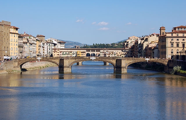 サンタ・トリニタ橋がかけられたのは1252年。木製の橋は大勢の人が集まったことで1259年に崩壊してまったため、ふたりが再会したときは石の橋にかけ替えられていました。その後も洪水や戦争による崩壊で幾度にわたり再建。現在の橋は1958年のものです。