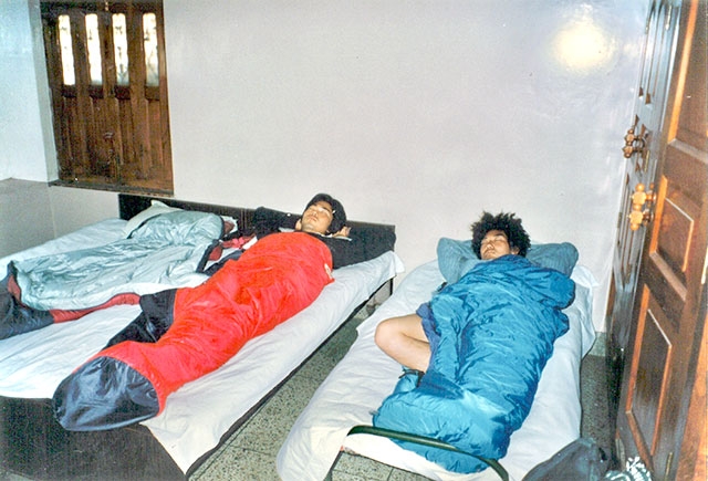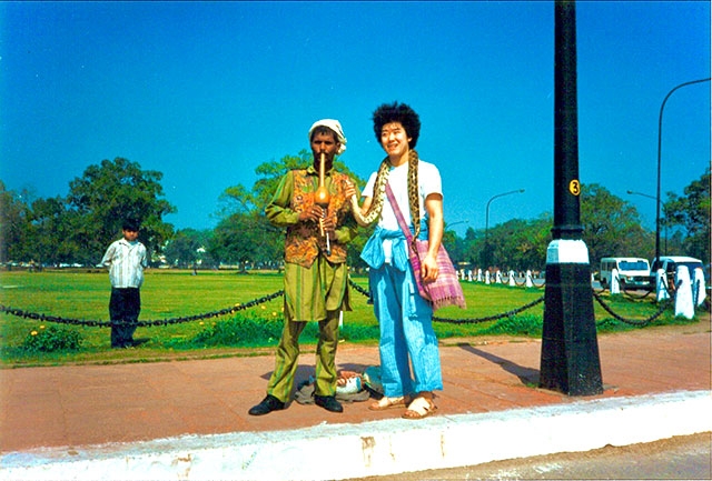97年2月27日の深夜。彼はデリーの空港にいた。春とはいえ初めてのデリーはまだ肌寒かったと振り返る。「忘れもしないエアインディアです。もともと日本を昼に出発して、到着は夕方6時の予定でしたが、出発が6時間遅れ、深夜に到着しました。深夜だというのに客引きがすごくて、当然宿なんて予約していなかったのでとにかく客引きを振り切り『地球の歩き方』に書いてあったチケット制のタクシーに乗って、宿が集まっているメインバザールに向かいました。『地球の歩き方』を見ながら安宿を一軒ずつ当たっていくんですが、なにせ深夜なので受付の人は寝てるし。僕たちに気づいた子供が寝ている受付の人を起こしてくれて、部屋を見せてもらって交渉して…って感じでしたね。6軒目くらいでなんとか決まったけど、今度は不衛生なシーツが気になって。持ってきた寝袋をベッドの上に敷いて寝ました。旅を続けるうちに日本人バックパッカーに『南京虫対策用にゴミ袋を買った方がいい』と教えてもらったりして、安宿で快適に眠る知識を少しずつ積んでいきました。」