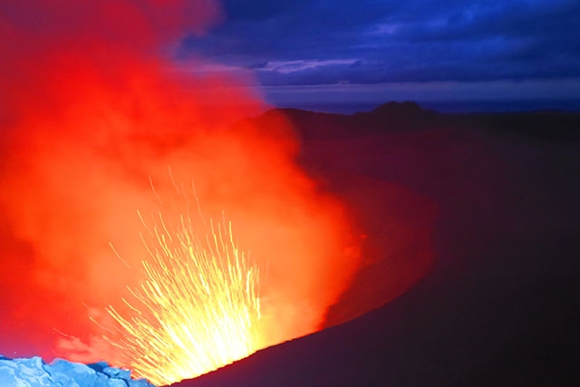 圧倒的な自然の力を感じる場所として次に挙がったのは火山。中でもバヌアツのタンナ島にあるヤスール火山は格別だと話す。「たくさんの島が集まって国を成すバヌアツは、 “火と水の国”と呼ばれているだけあって火山がたくさんあるんです。その中で観光客でも見られるのがヤスール火山です。トラックで噴火口まで乗せて行ってくれて、誰でも火口の前の噴火が見られて、しかもその噴火がちょうどいいんですよ。他の火山だとマグマ溜まりを見られることはあっても噴火はなかなか見られません。噴火が激いと人は近寄れないですしね。でもヤスール火山は20分に1回くらい、人が見られる程度の噴火が起こるんです。火口の淵でみんなで囲んで見るんですが、天候次第で噴火口に回り込んでマグマ溜まりを見ることもできるんです。」そんな至近距離では熱さが心配になるが、装備は通常の登山服で問題ないよう。火山の存在が少し身近に感じられそうだ。