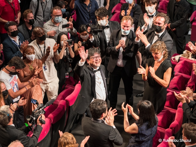 それは、まさに今この瞬間のカンヌです。コロナ禍は落ち着いていないんですけれど、コロナ禍になってから映画祭がどこも中止や延期になった。上映も制限があります。映画文化がなくなってしまう危機にさらされています。今年のカンヌ国際映画祭は、開催が中止された昨年を経て、完全ではないけれど復活した。映画文化は途絶えないんだという気概のある場所にやって来ることができて、自分たちの映画を見せて、みんなとともにやるんだというのをアピールすることができてよかったです。