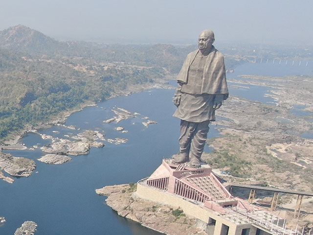 東京都庁とほぼ同じ高さ240mの巨像があるのはインド。野生動物保護区にも指定された緑豊かな公園内、ゆったり流れる広い川のほとりに、周囲とのサイズ的な調和を完全に無視して屹立しています。高さ135mの展望台までエレベーターで上がると、目の荒い格子がはまった窓から周囲の景色も堪能できます。像のモデルは、日本人には馴染みの薄いサルダール・ヴァッラブバーイー・パテール。(誰?)インドがイギリスから独立する際に、562もの藩王国をパキスタンではなくインドへ帰属させた英雄として、人気が高い政治家です。