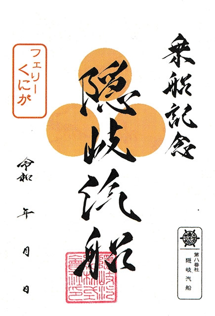 本土と隠岐諸島を結ぶ隠岐汽船の御船印は、航路開設の祖、松浦家の家紋(三星紋)がデザインされたもの。運航船舶のファンネルマークにも使われています。シンプルなデザインながら絶妙なバランスですてきです。