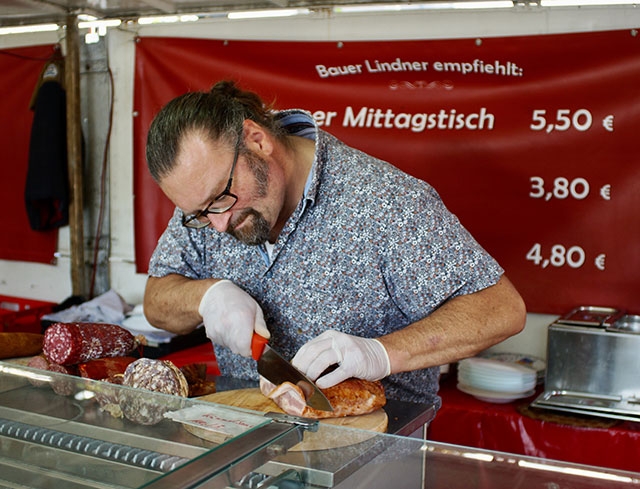 ヴィンターフェルト広場のマーケットの筆者イチオシはブラートヴルスト(ドイツの代表的なソーセージ)です。「クリスチアンのおいしいソーセージ」という看板が目印です。