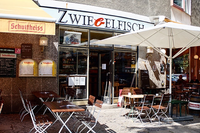 もう一軒ご紹介したいのはツォー(ZOO)駅やベルリンの銀座クーダムにも近いサヴィニー(Savigny)広場にある西ベルリン時代からの老舗ツヴィーベルフィッシュ(Zwiebelfisch)です。