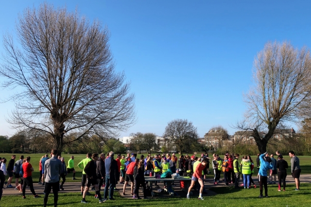 パークランに参加するためには、Tシャツにスニーカーなど、運動に適した格好さえととのえれば、事前予約も財布も必要なく、世界各地で、手ぶらで参加することができます。先月2021年7月19日より、イングランドでのロックダウン規制はいったん完全に解除されたので、マスクの着用義務はありません。